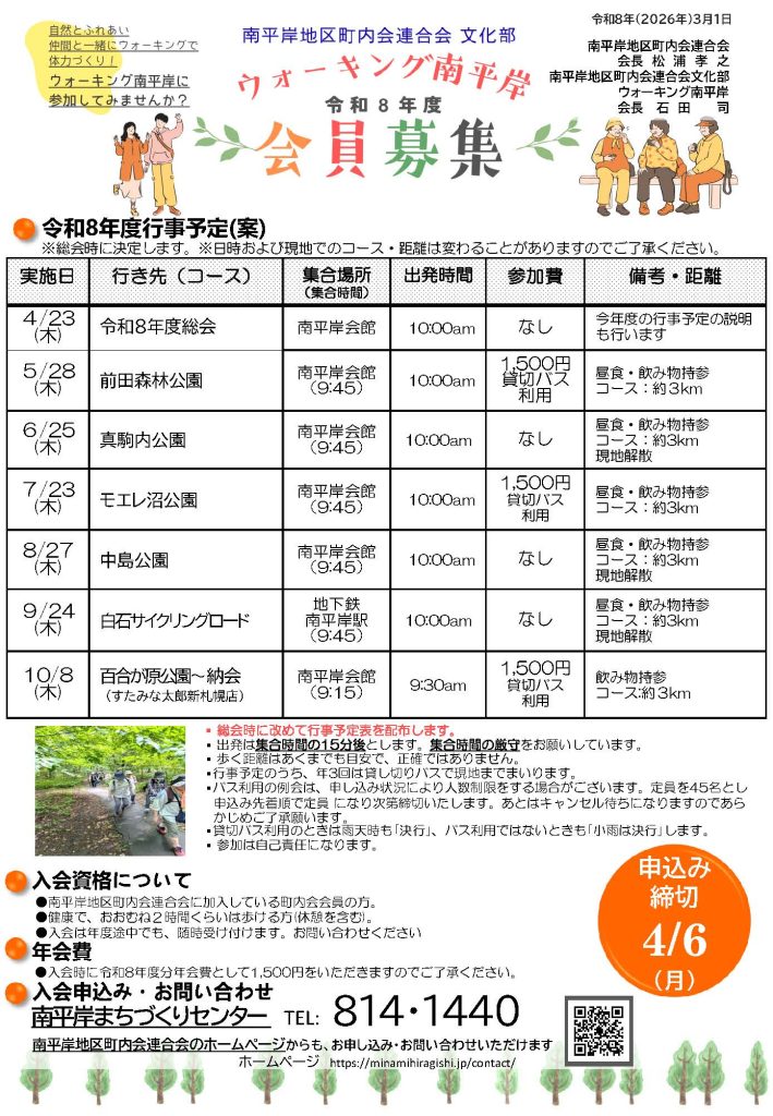 ウォーキング南平岸の令和8年度会員募集のお知らせです。