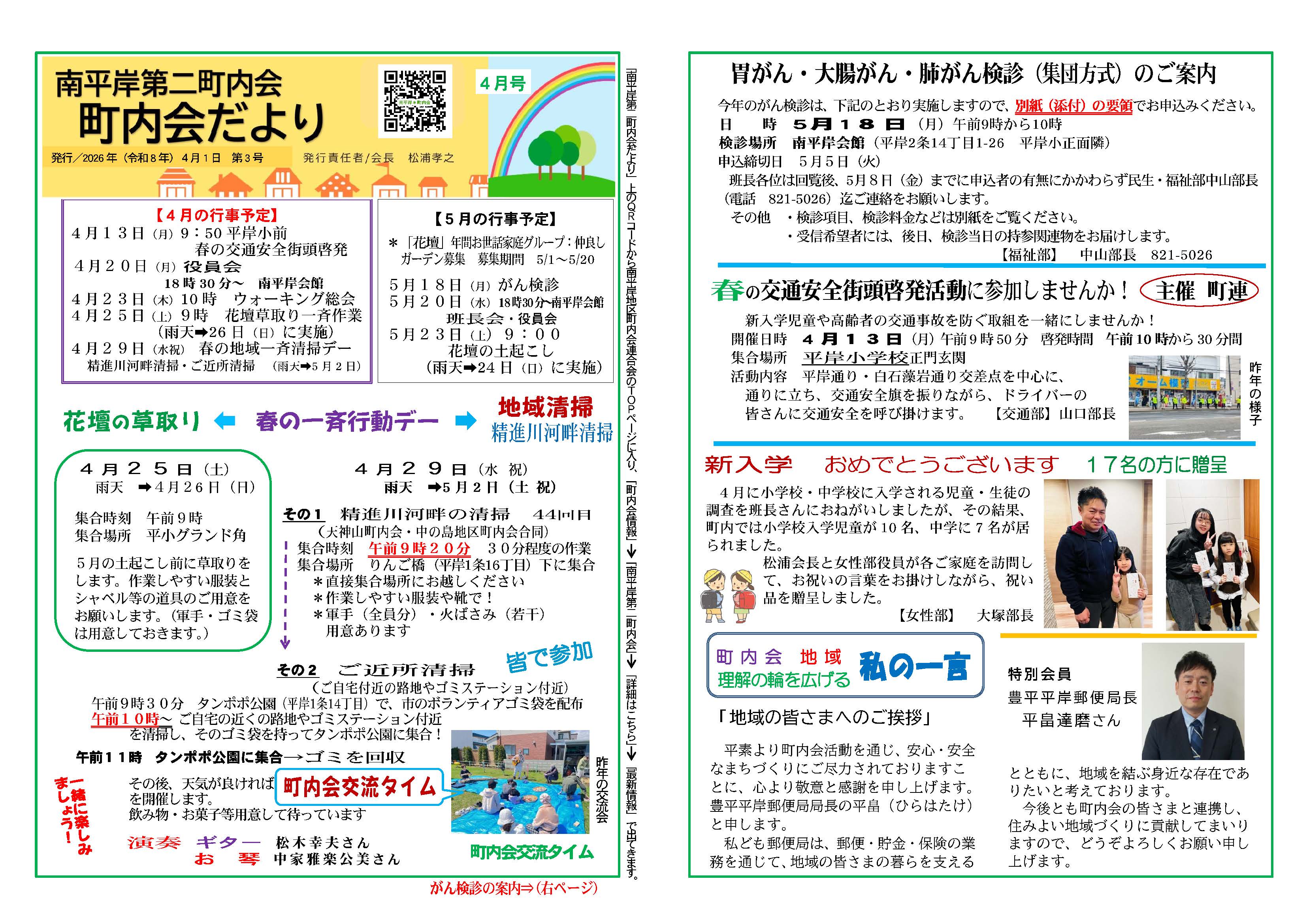 2026年4月2日 2026年4月2日 Curec7229 南平岸第二 南平岸第二町内会 町内会だより 南平岸第二町内会より 町内会だより 2026年4月号が発行されました。 20260401 第二町内会だより 4月号 FacebookX